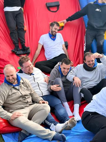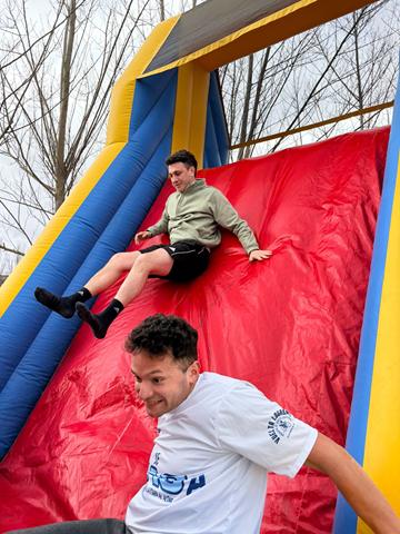 Circuitos hinchables, pruebas por equipos y retos divertidos adaptados al protagonista. Risas aseguradas desde el primer minuto.