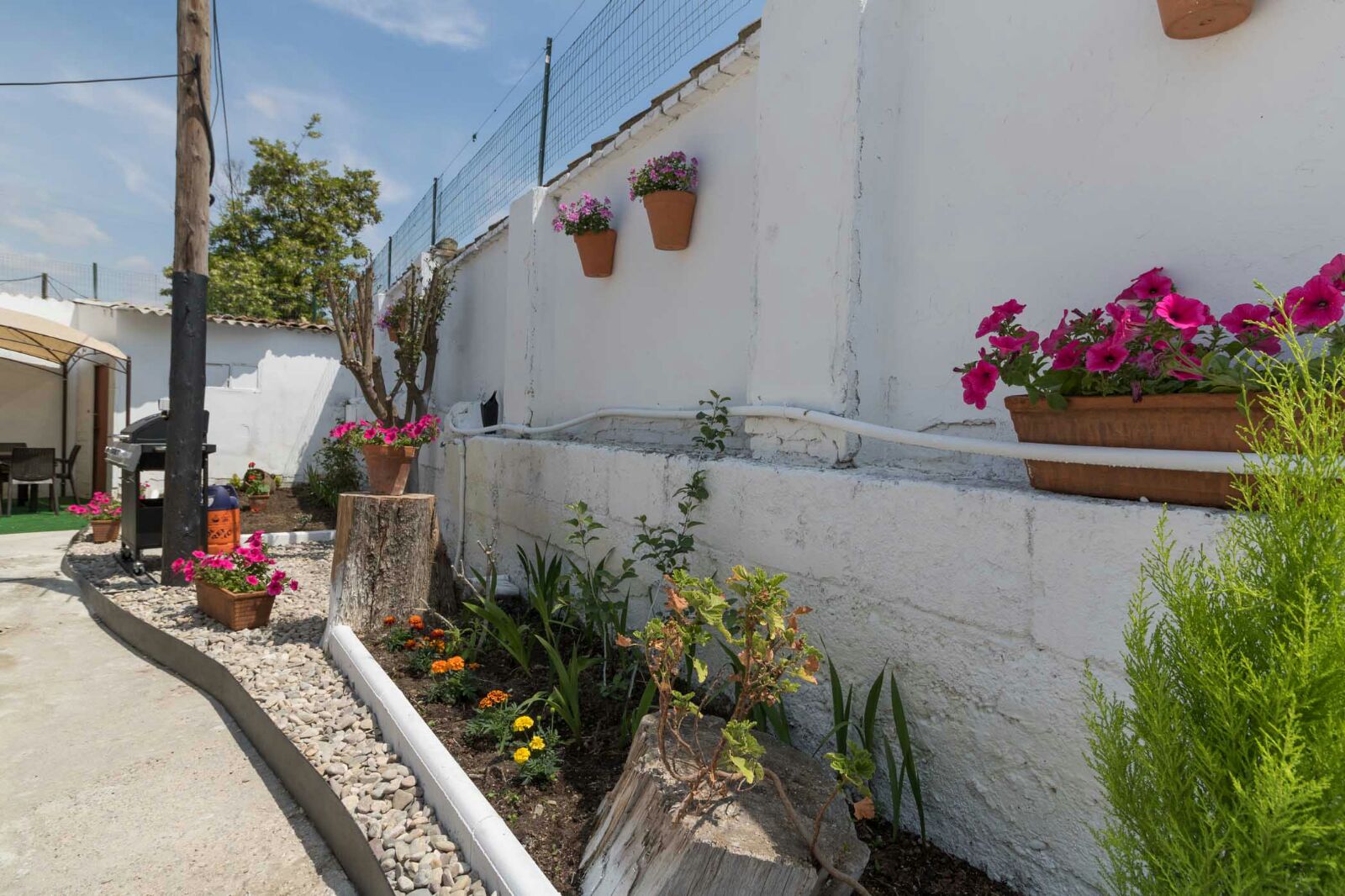 Nuestra Casa con barbacoa para despedidas en Logroño consta de dos casa unidas , cercadas por un muro. Están separadas del resto de construcciones de la zona. Tiene patio con cenador y barbacoa. Dentro cada una de las viviendas dispone de cocina y baño.